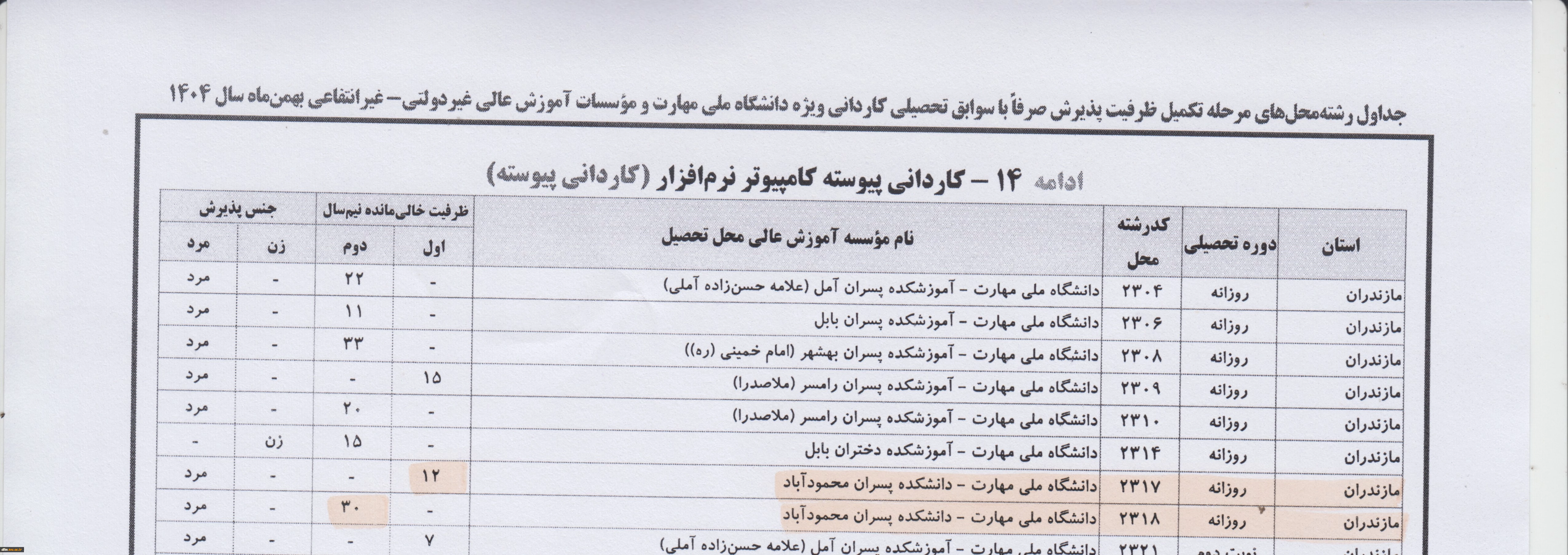 گفتنی است جدول رشته های مرحله تکمیل ظرفیت پذیرش دانشکده ملی مهارت محمودآباد به پیوست می باشد