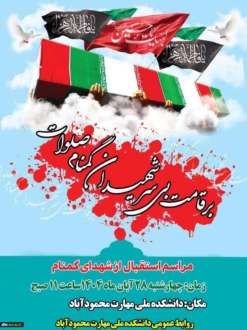 امتیاز دهید : مراسم استقبال و وداع با شهدای گمنام در دانشکده برگزار می شود 2 دوشنبه 26 آبان 1404 ساعت 8:00