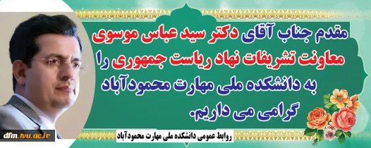 مقدم دکتر سید عباس موسوی معاونت تشریفات نهاد ریاست جمهوری به دانشکده را گرامی می داریم تاریخ انتشار : شنبه 15 آذر 1404